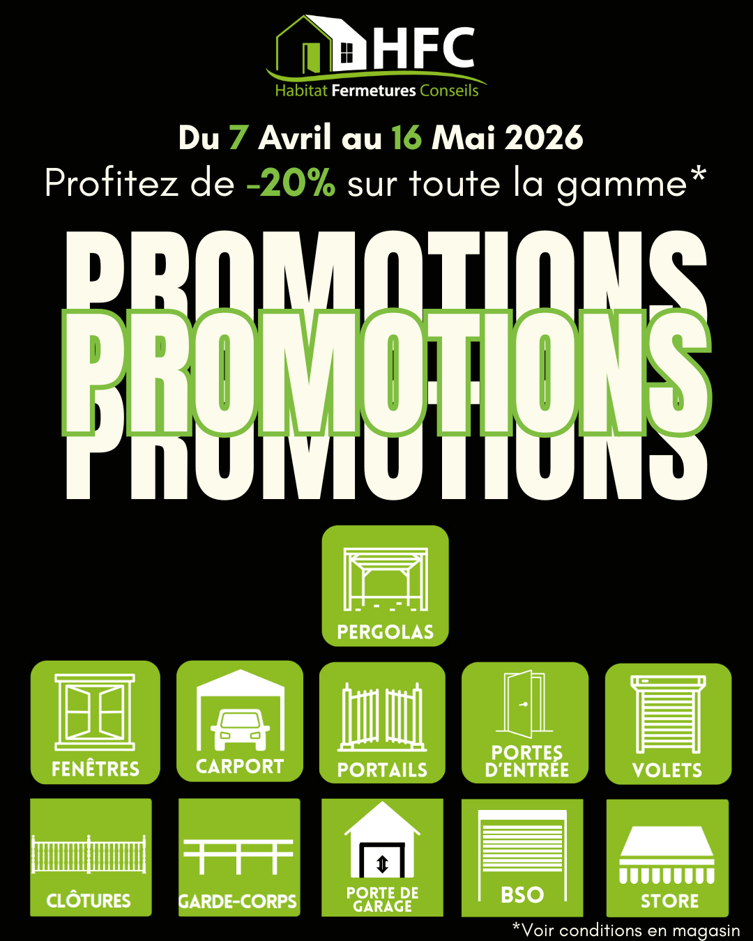 Du 7 avril au 16 mai, Habitat Fermetures Conseils Lorraine lance une promotion exceptionnelle sur toute la gamme : menuiseries, pergolas, portes d’entrée, portails et bien plus encore.
